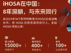 2019年SKT 思珂特教育带领首届中国学生代表参加 HOSA 全球站: SKT思珂特教育与HOSA国际组委会正式达成战略独家合作,启动iHOSA项目,并带领首届中国学生代表参与HOSA 2019 全球站。